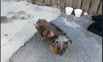 Stăpânul spune că nu și-a abandonat cățelul, iar starea acestuia a fost provocată de o afecțiune cutanată mai veche.