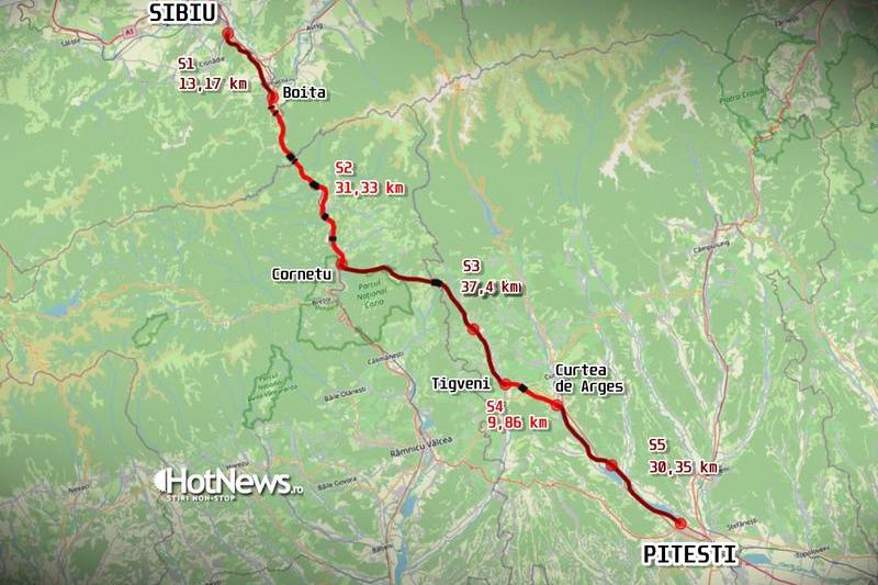 Foto: Secțiunile de pe Autostrada A1 Sibiu – Pitești