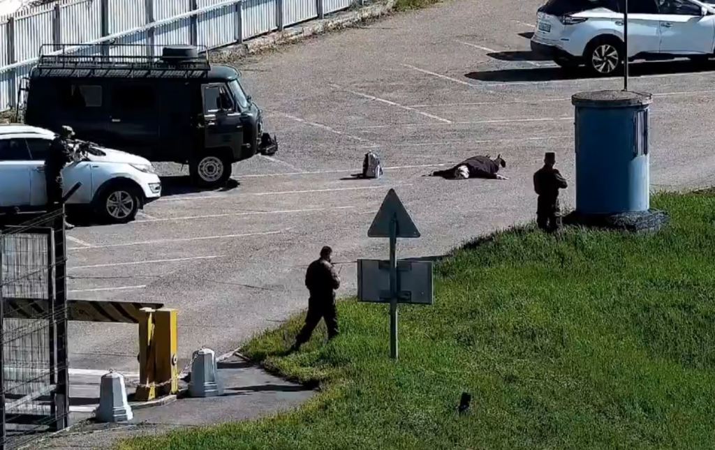Imagini publicate de autoritățile ruse au arătat o femeie întinsă pe asfaltul unei parcări, în timp ce bărbați țineau arme îndreptate asupra acesteia– iar lângă ea se afla un rucsac. De asemenea, imaginile au arătat cum geniștii au detonat un rucsac ce ar fi aparținut acesteia.
