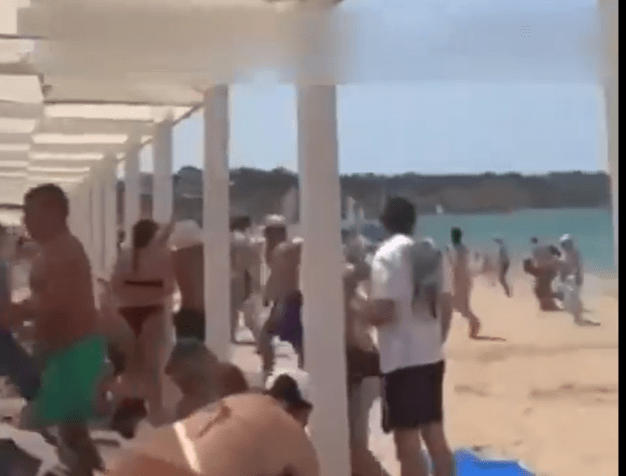 Imaginile de la televiziunea de stat rusă au arătat oameni care fug de pe o plajă, iar unii sunt duși pe șezlonguri.