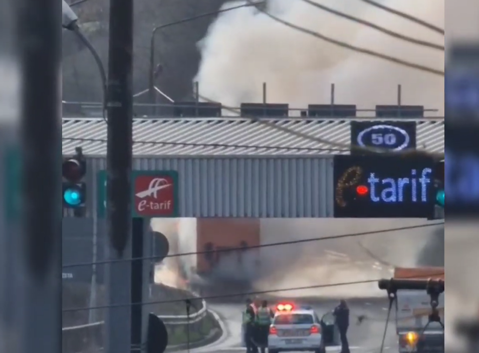 VIDEO TIR încărcat cu 24 de tone de îngrășământ, în flăcări lângă staţia de taxare Feteşti / Traficul este oprit pe A2, sensul spre București