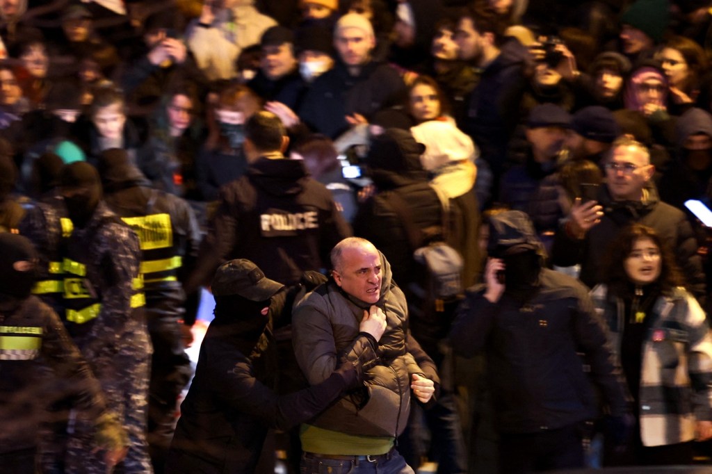 Un reporter Reuters a observat că au fost reținuți trei protestari, printre care și Nika Melia, unul dintre liderii celui mai mare partid din opoziția țării, Coaliția pentru Schimbare. Autoritățile l-au reținut și pe Giorgi Ugulava, fost primar la Tbilisi, conform relatărilor din presa locală.