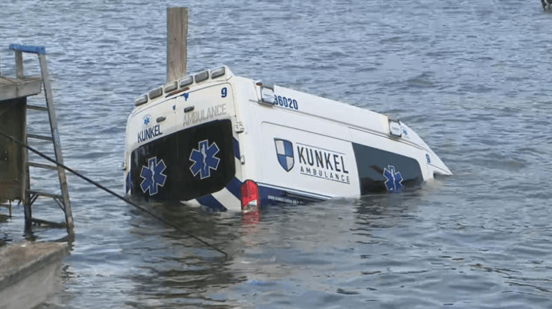 Ambulanța a fost ulterior recuperată din apă.