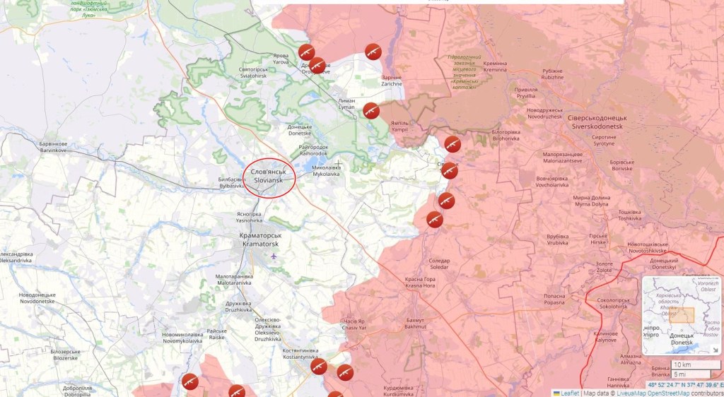 În primele faze ale invaziei Slaviansk ajunsese un oraș din prima linie a frontului, dar forțele armate ruse s-au retras ulterior și s-au concentrat pe alte sectoare.