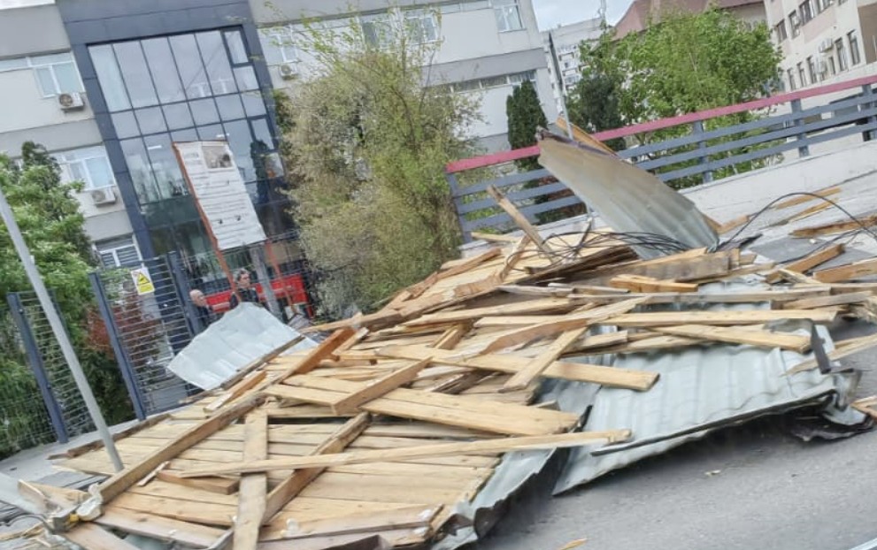 Din cauza vântului puternic în zonă, peste 150 de metri pătraţi de acoperiş s-au desprins şi au căzut. De asemenea, au fost avariate şi mai multe maşini.