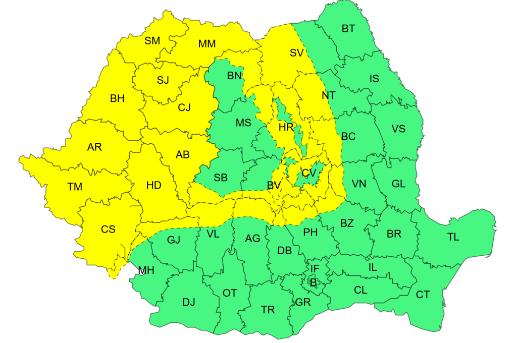 În același timp, ANM a emis o alertă cod galben de vânt puternic, valabilă în intervalul 17 noiembrie, ora 12 – 18 noiembrie, ora 06.