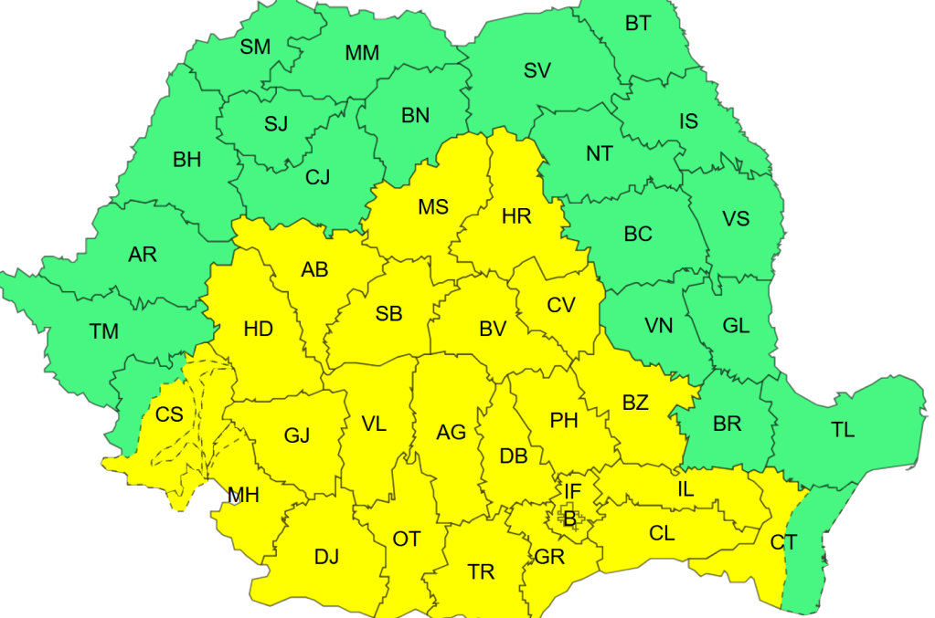 Totodată, ANM a emis două avertizări cod galben pentru vineri, 27 martie, între orele 05:00 și 22:00, de vânt puternic și ploi însemnate cantitativ.