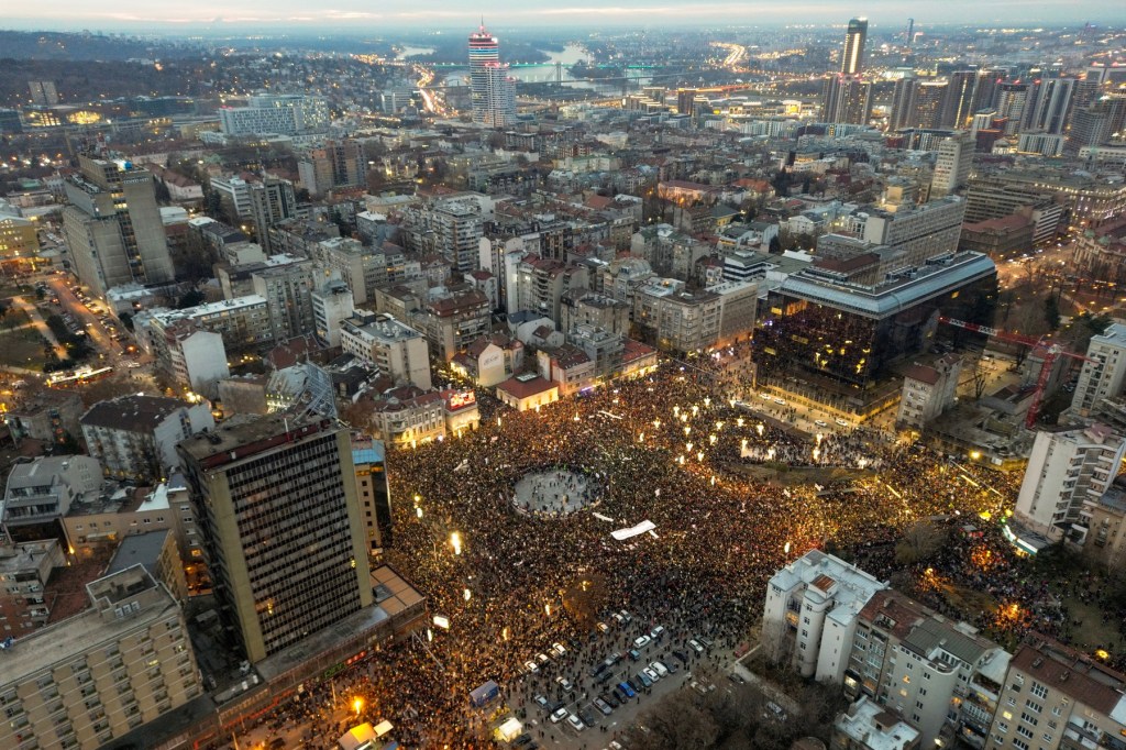 Manifestația de duminică din Belgrad a fost organizată de organizațiile studențești și de cele ale fermierilor și reprezintă apogeul unei mișcări de protest, declanșate de prăbușirea acoperișului unei gări, luna trecută, un incident grav, care a provocat moartea a 15 persoane.
