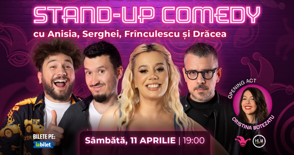 Tot sâmbătă pe la 19:00, la The Fool, e program de stand-up show cu Anisia, Serghei, Drăcea și Frînculescu. Accesul se face cu jumătate de oră înainte, iar biletul trebuie luat din timp. E o seară în care glumele merg mai bine dacă publicul e atent și ajunge la timp, ceea ce nu e întotdeauna garantat într-un weekend de sărbătoare.