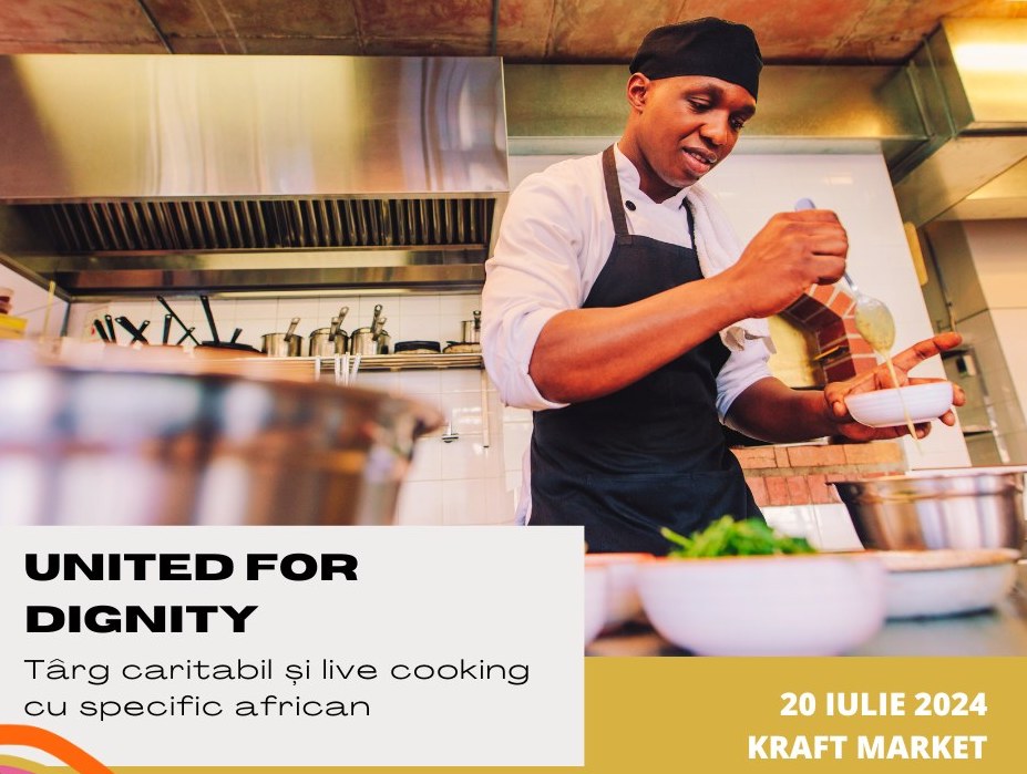De exemplu, la Kraft Market (Matei Millo 8) are loc de la ora 16:00 evenimentul United for Dignity. Este vorba de live cooking cu preparate tradiționale africane, de un târg cu specific african (bijuterii, accesorii, unelte șamanice, haine cu motive africane, produse, ingrediente și condimente locale), împletituri de păr tradiționale, și multe alte surprize.