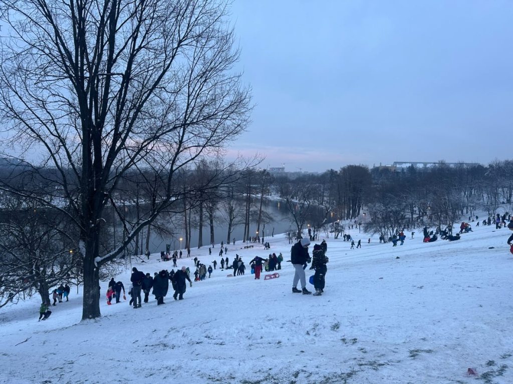 Iar vremea a atras o mulțime de curioși în parcuri, care au vrut să se bucure de zăpadă: s-au dat cu săniile pe pantele din parcuri.