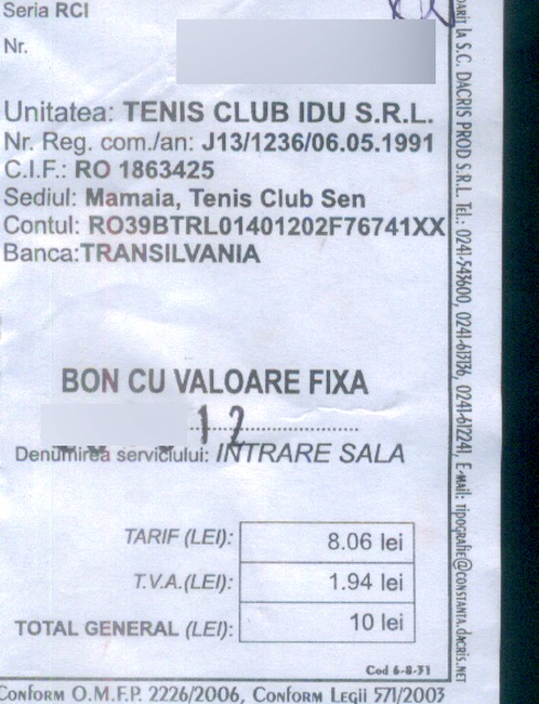 Chitanta de la Constanta – 10 lei pentru „intrare sala”
