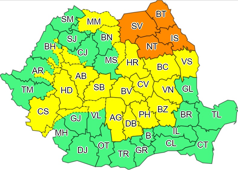 „În județele Suceava, Botoșani, Neamț și Iași va ploua torențial, iar în intervale scurte de timp sau prin acumulare se vor înregistra cantități de apă ce vor depăși pe arii extinse 40 l/mp și local 60…70 l/mp”, spun meteorologii.