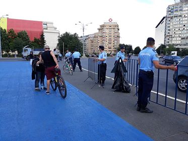 Jandarmii au adus garduri pentru a bloca înaintarea manifestanțior în piață.