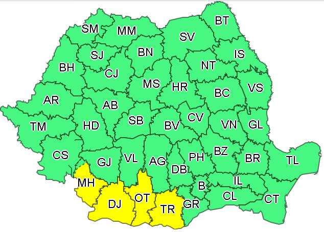 Judeţele vizate de avertizarea cod galben de disconfort termic ridicat sunt: Mehedinţi, Dolj, Olt şi Teleorman.