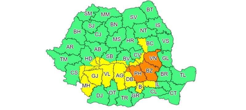 De asemenea, Administrația Națională de Meteorologie a emis două avertizări cod galben și portocaliu de precipitații însemnate cantitativ și intensificări ale vântului la munte.