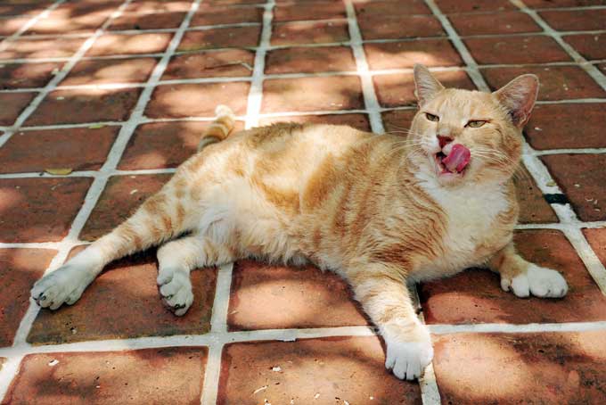 În interiorul clădirii în stil colonial, căldura este nemiloasă. Măştile vizitatorilor sunt pline de pete de sudoare în timp ce un ghid le oferă detalii despre viaţa scriitorului şi a soţiei sale, Pauline, în anii ’30. Un alt angajat toarnă cuburi de gheaţă în vasele cu apă ale pisicilor, stârnind exclamaţiile turiştilor.