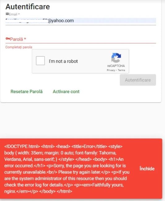 ”Eu și încă o rudă de a mea am încercat ne luăm câte un voucher prin programul Rabla Pentru Electrocasnice. Ne-am conectat la platformă din primele secunde în care s-a deschis a treia etapă (cea în care puteam lua un voucher pentru un monitor, un TV sau un laptop). Ca prin magie, timp de 5 sau 6 minute primeam o eroare la generarea oricărui voucher, așa încât nu am reușit să generăm nimic. După acele 5 sau 6 minute, am primit eroarea specifică epuizării tuturor voucherelor”, ne-a scris Bogdan H, care ne-a trimis și o imagine cu eroarea ce i-a apărut la încercările de generare a voucherului: